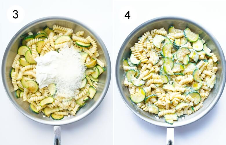 Die Stärke darin sorgt dafür, dass sich Käse, Öl und Zucchini zu einer seidig-glänzenden Sauce verbinden, die jede Nudel perfekt umhüllt.